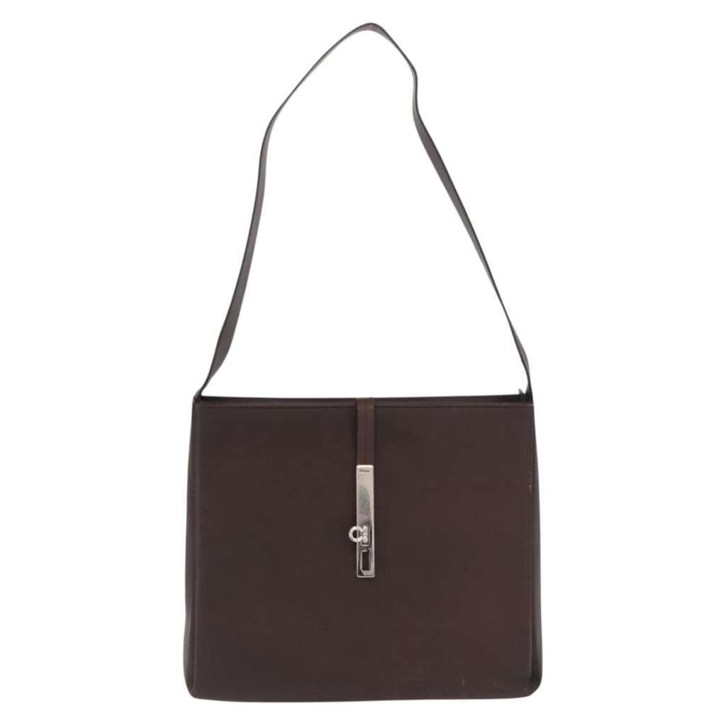 Salvatore Ferragamo Gancini Shoulder Bag Brown Large Leather