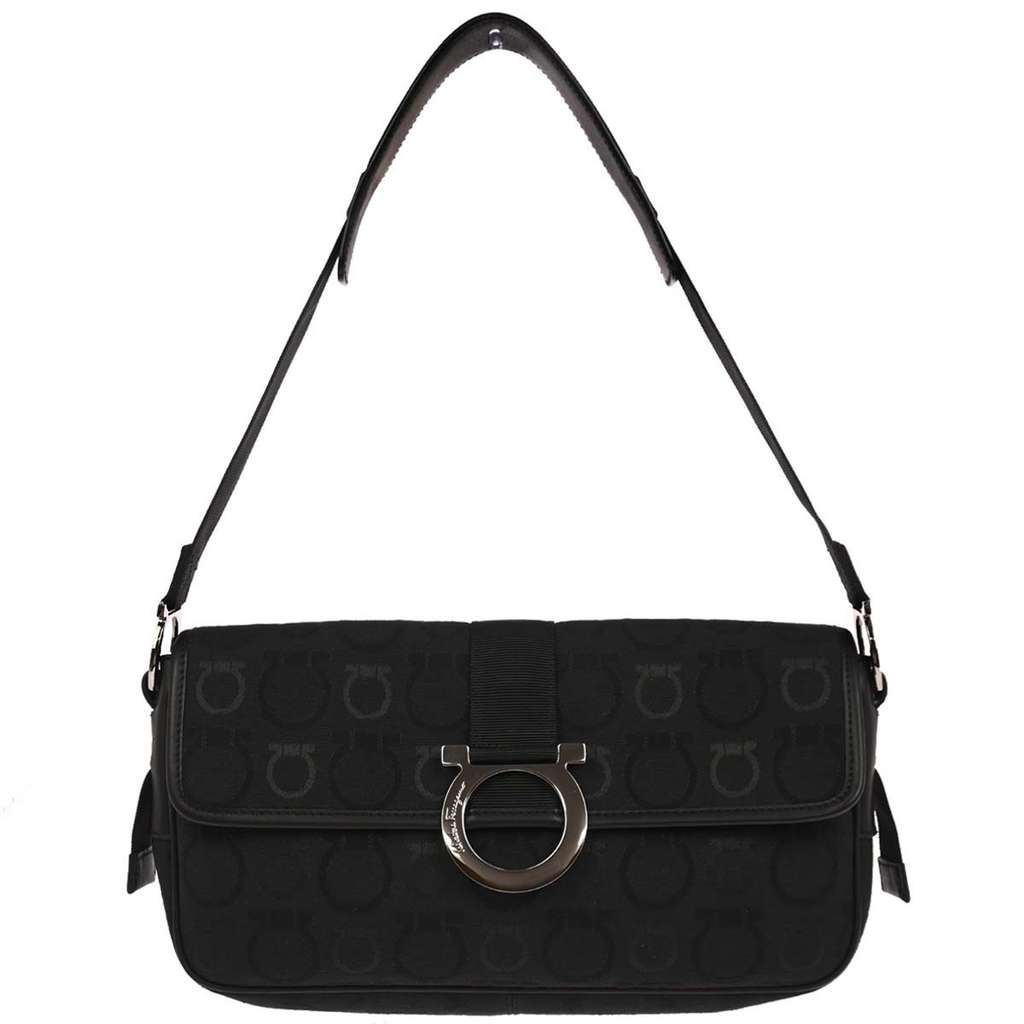 Salvatore Ferragamo Gancini Shoulder Bag Black Medium Canvas