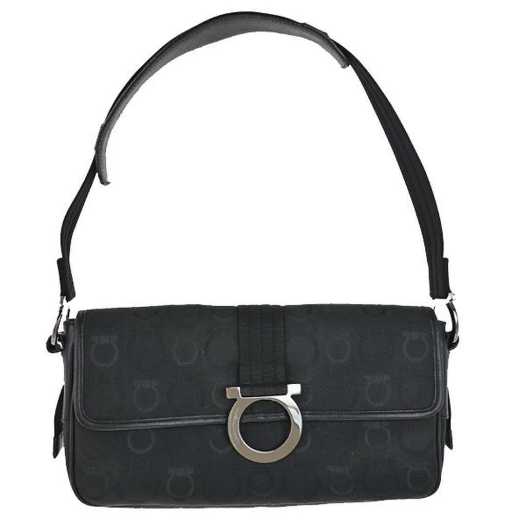 Salvatore Ferragamo Gancini Shoulder Bag Black Medium Canvas