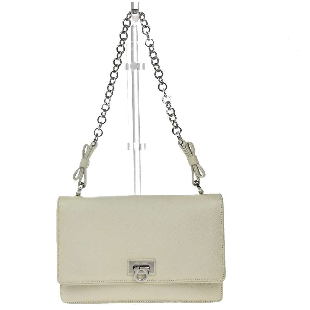 Salvatore Ferragamo Gancini Shoulder Bag White Small Leather