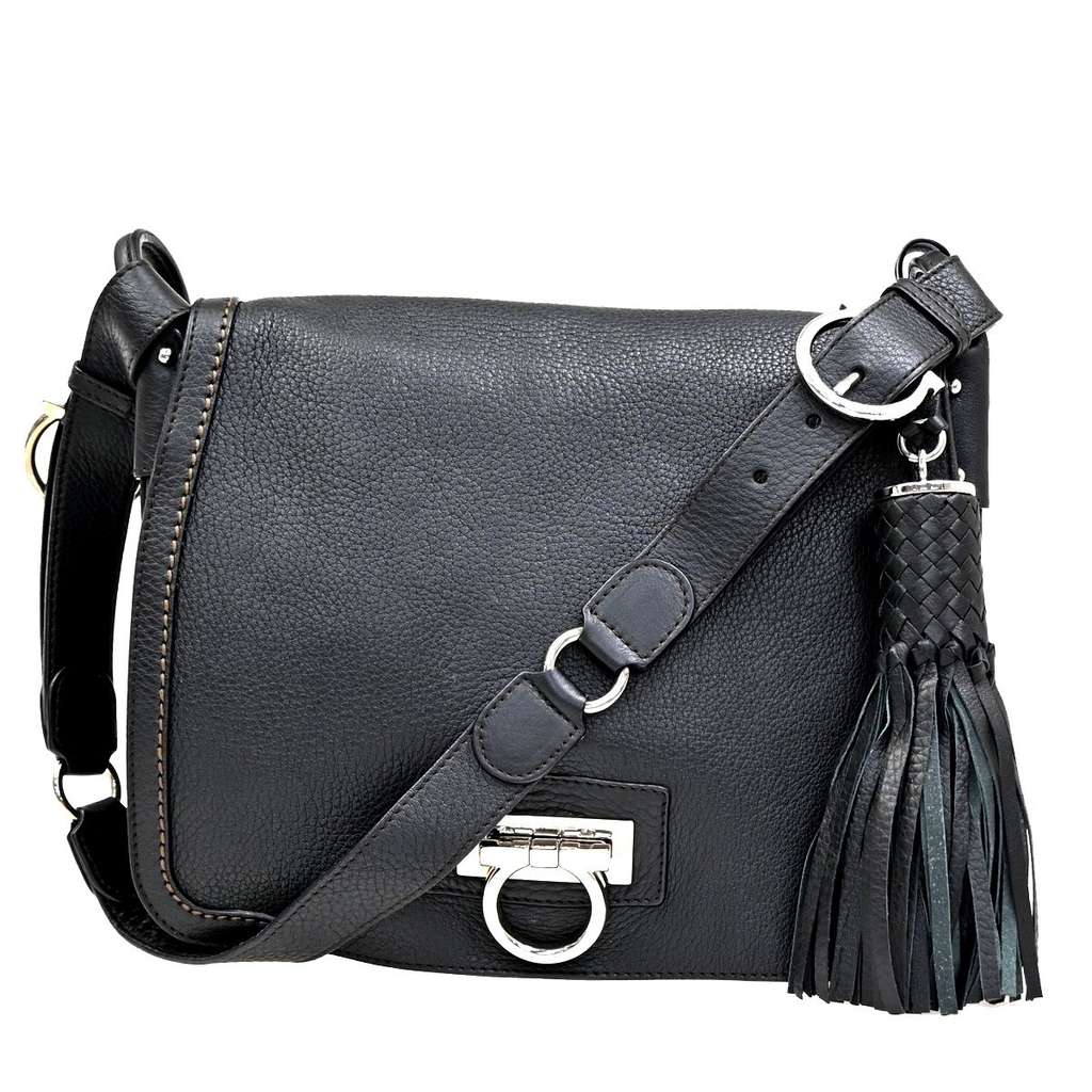 Salvatore Ferragamo Gancini Shoulder Bag Black Medium Leathe