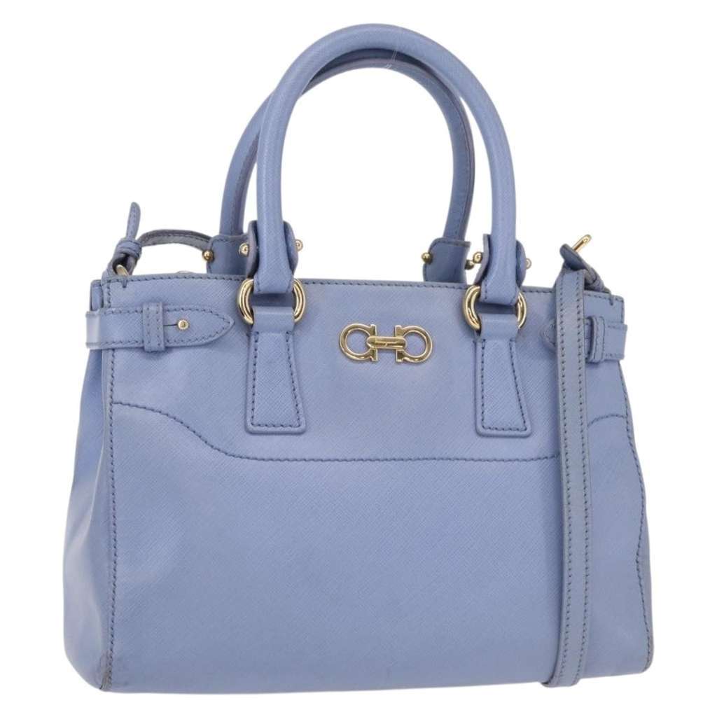 Salvatore Ferragamo Gancini Tote Blue Small Leather