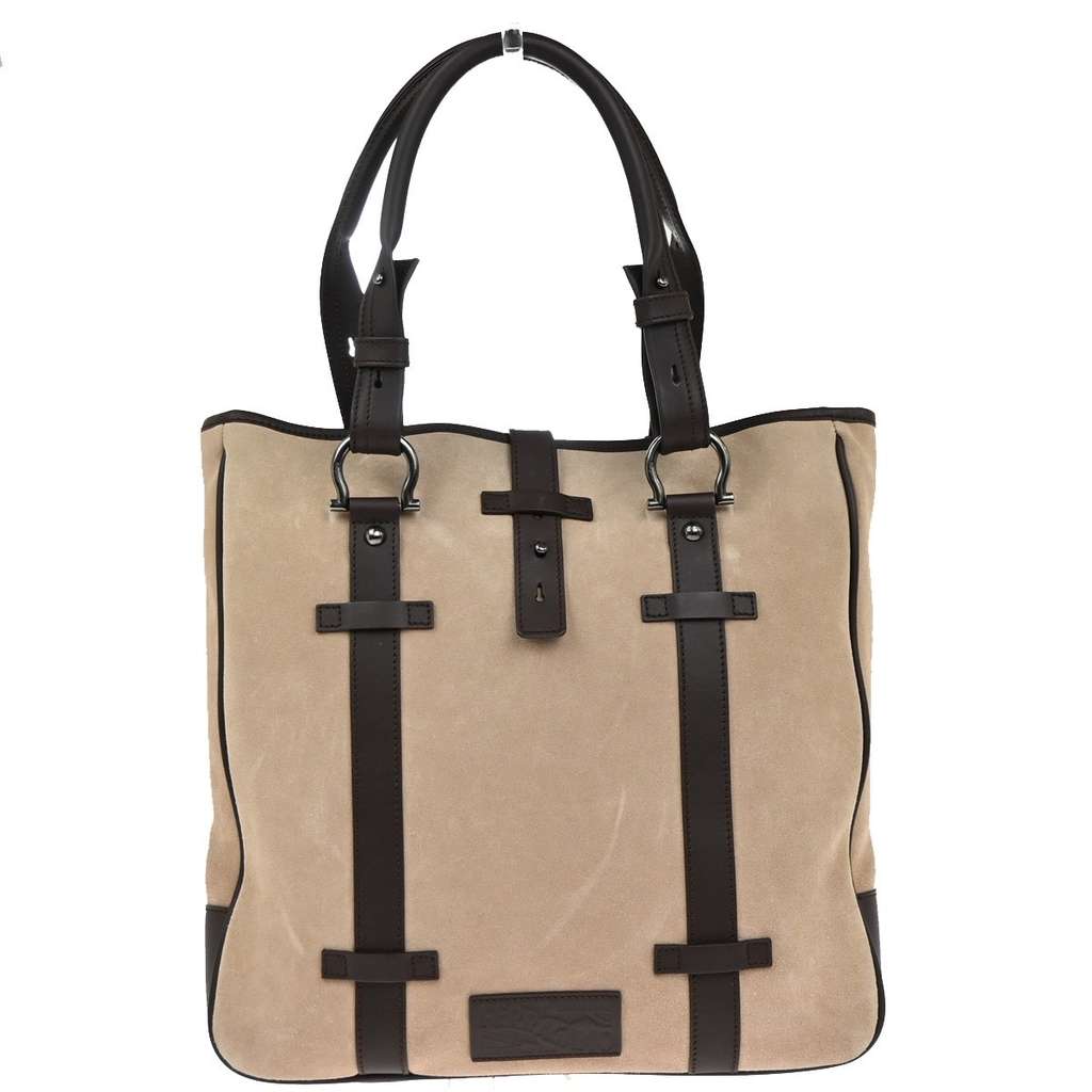 Salvatore Ferragamo Gancini Tote Brown Large Suede