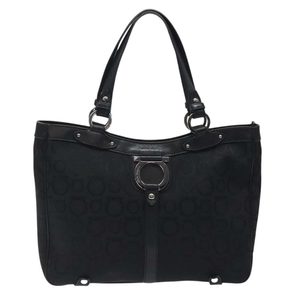 Salvatore Ferragamo Gancini Tote Black X-Large Canvas