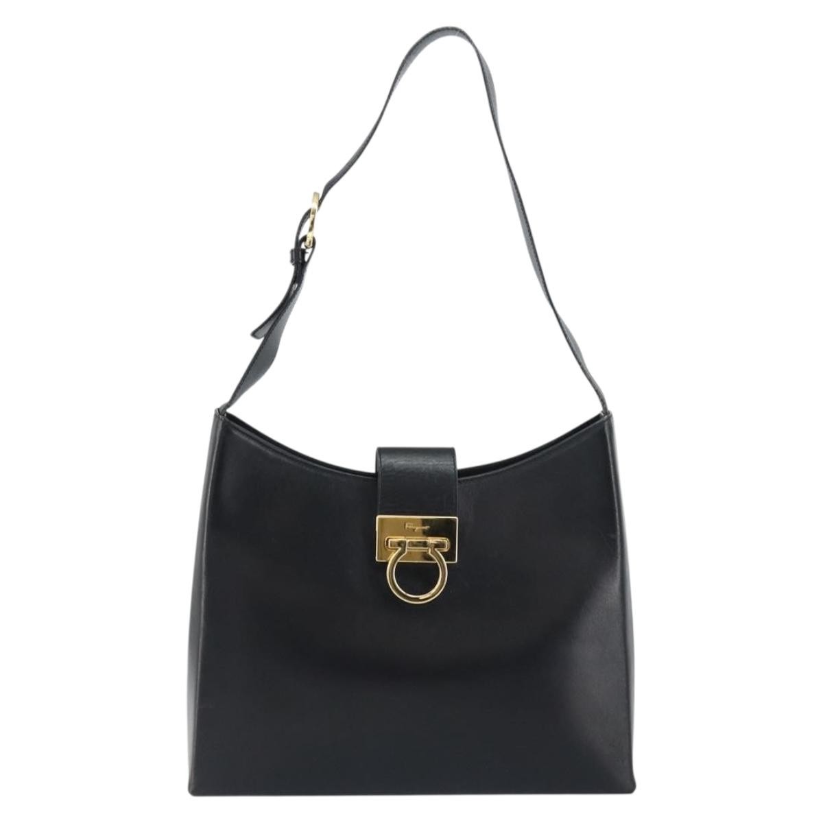 Salvatore Ferragamo Gancio Flap Hobo Black Large Leather