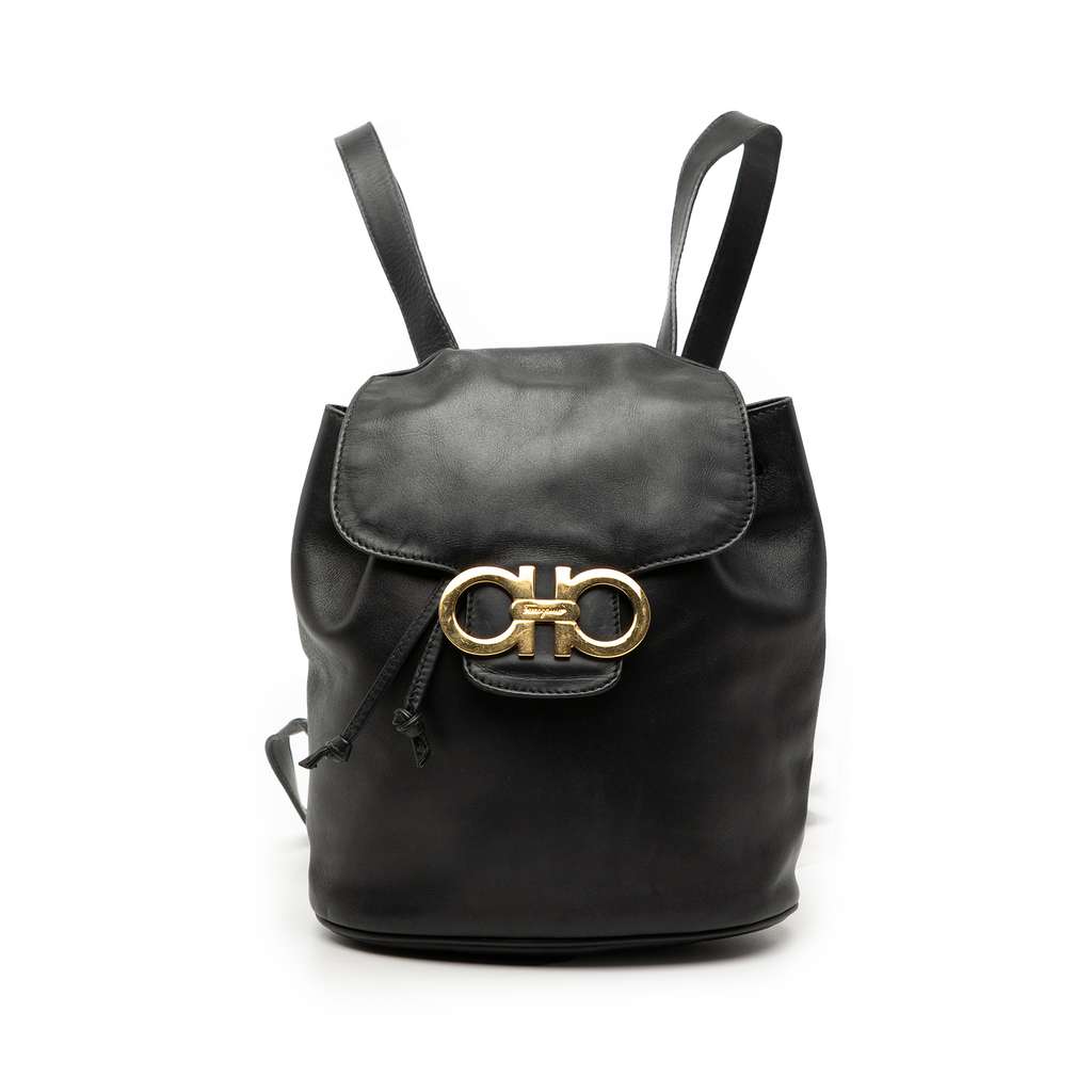 Salvatore Ferragamo Leather Double Gancini Backpack Black Mi