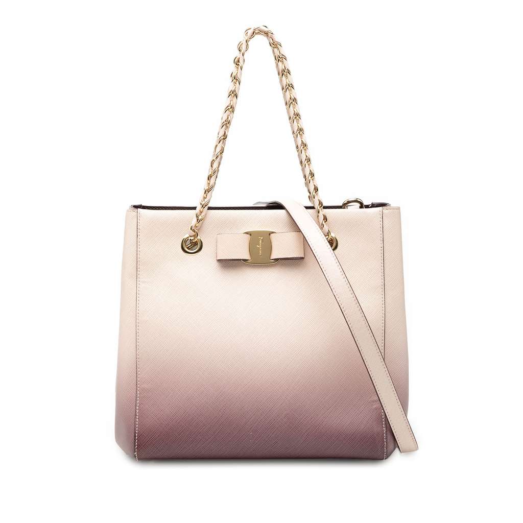 Salvatore Ferragamo Ombre Leather Vara Bow Satchel Pink Smal