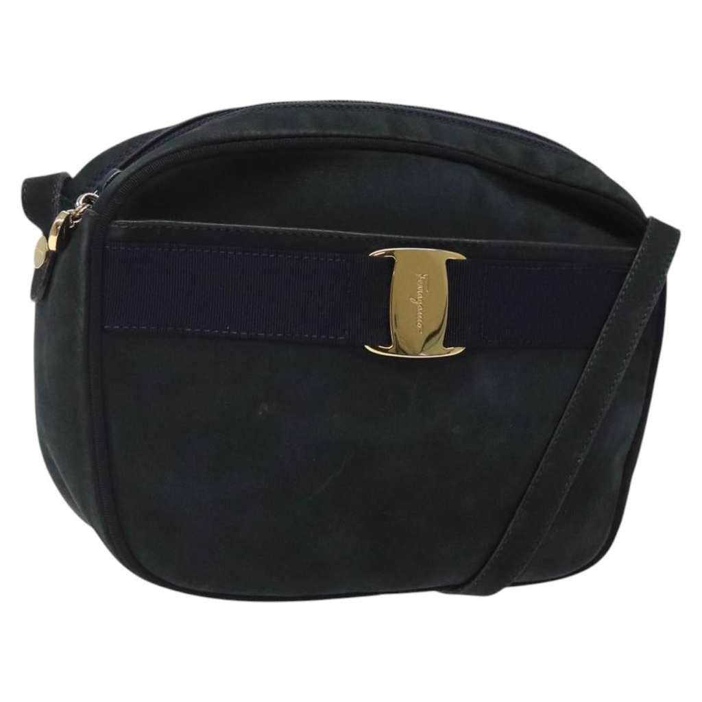 Salvatore Ferragamo Vala Shoulder Bag Navy Small Suede