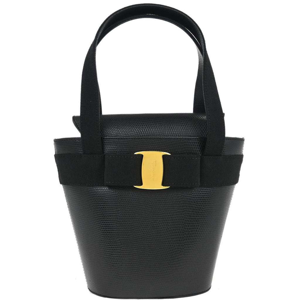 Salvatore Ferragamo Vara Bow Top Handle Bucket Bag Black Min