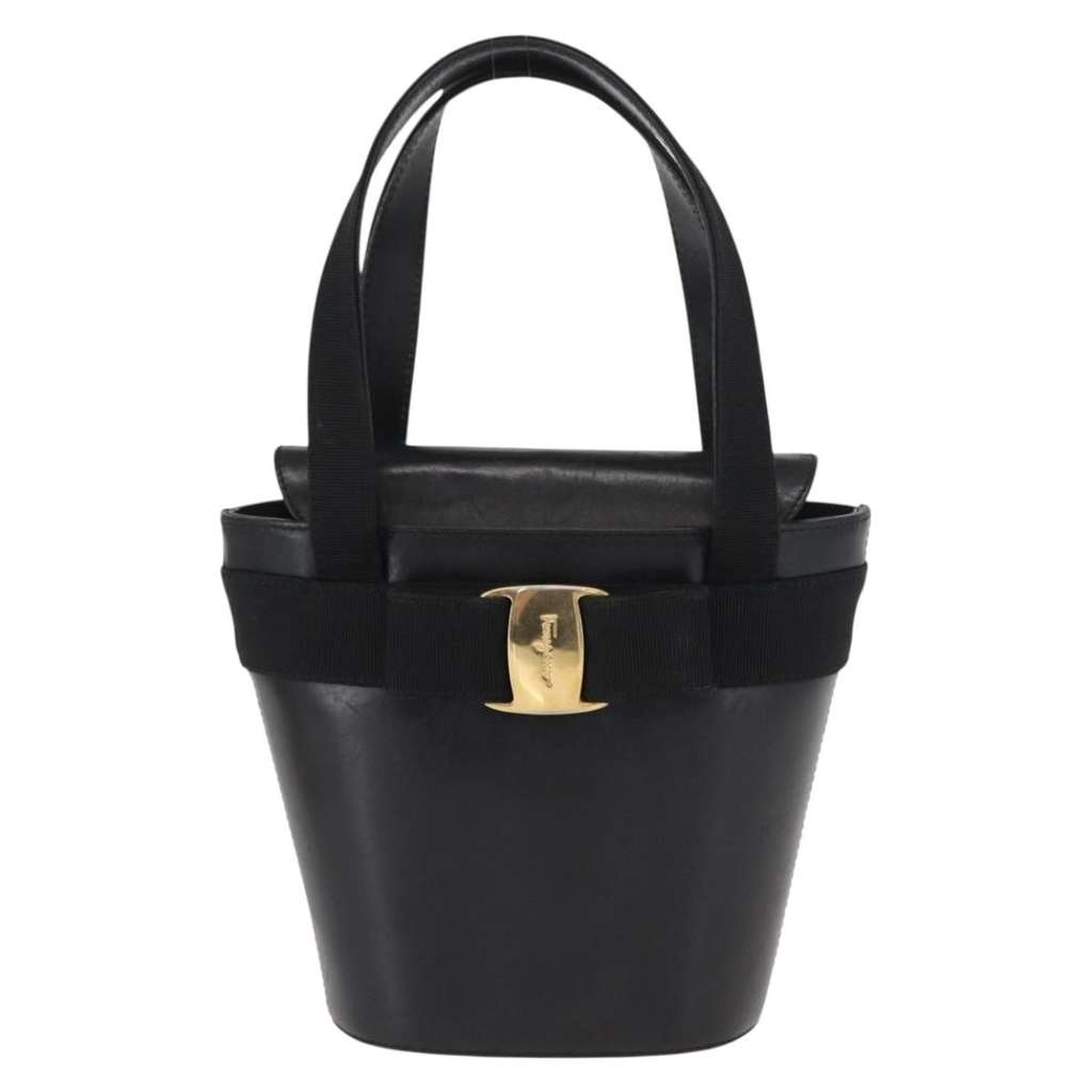 Salvatore Ferragamo Vara Bow Top Handle Bucket Bag Black Min