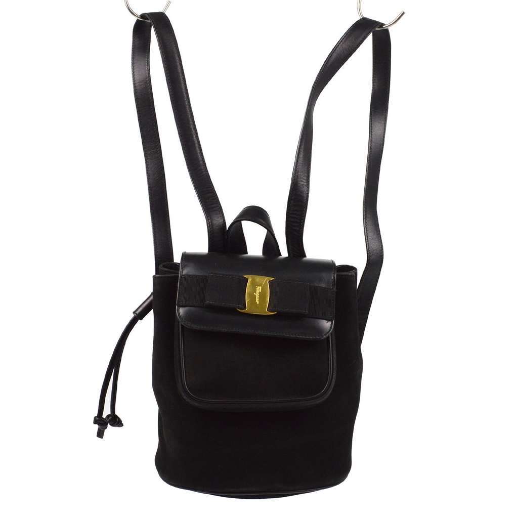 Salvatore Ferragamo Vara Flap Drawstring Backpack Black Mini