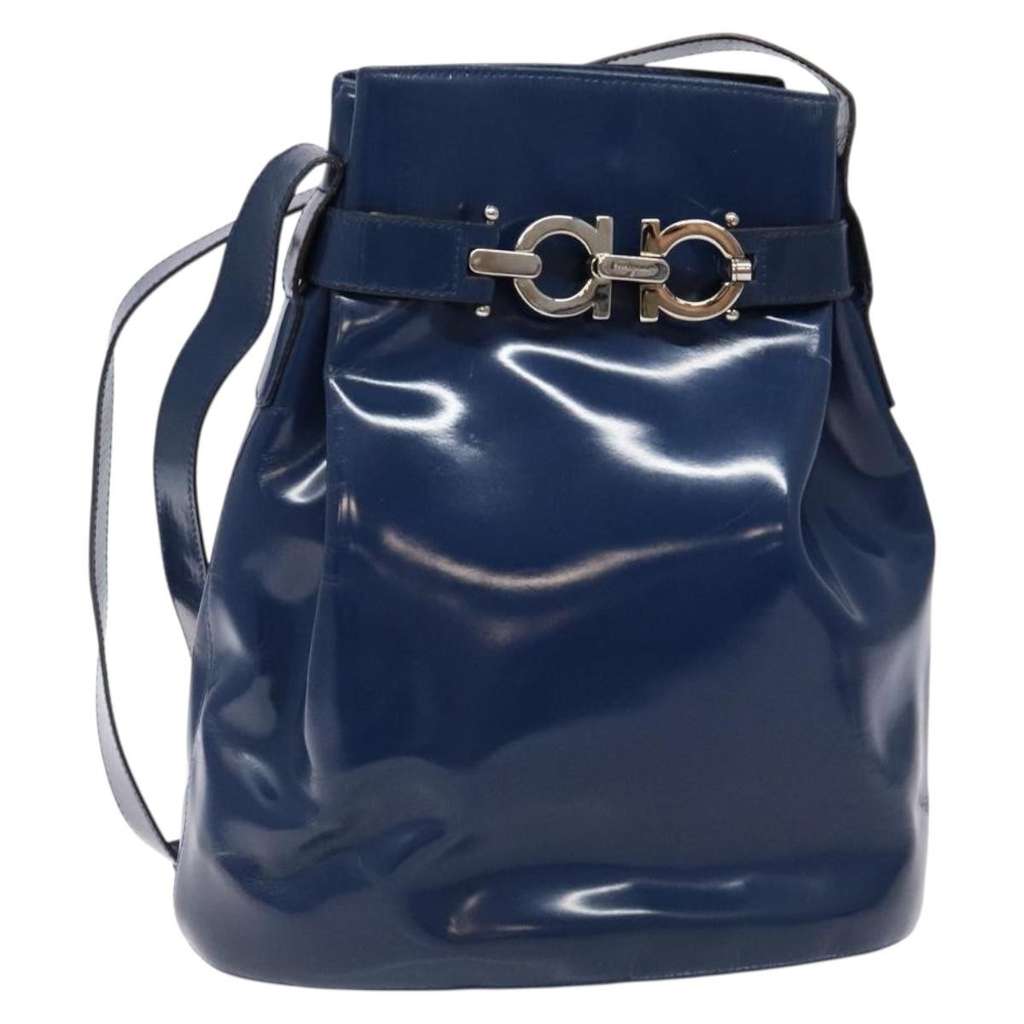Salvatore Ferragamo Vintage Gancini Bucket Bag Blue Medium