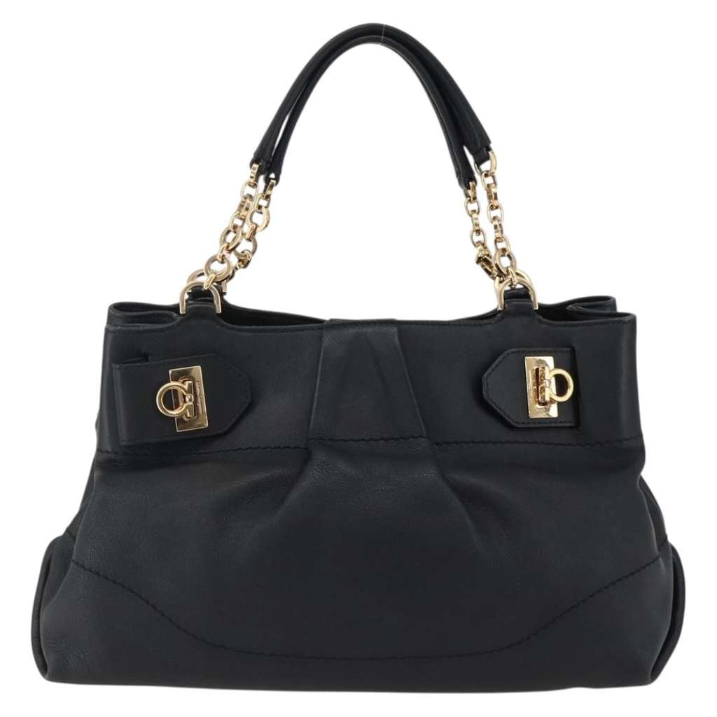 Salvatore Ferragamo W Chain Tote Black X-Large Leather