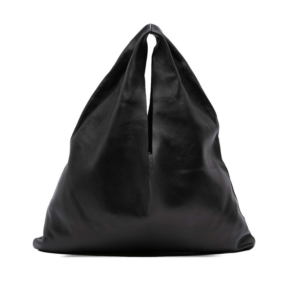 The Bindle features a leather body, a flat handle, and an open top.
