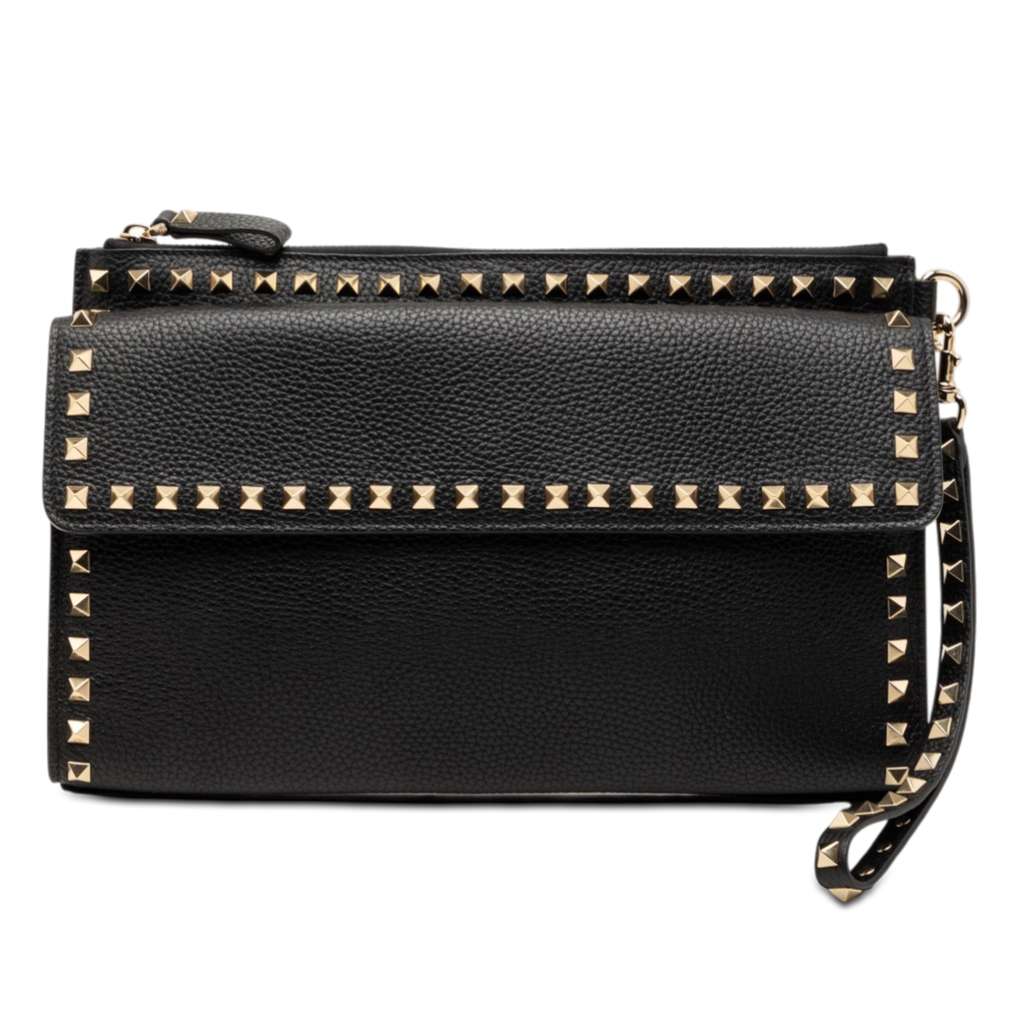 Valentino Grained Calfskin Rockstud Wristlet Clutch Black La