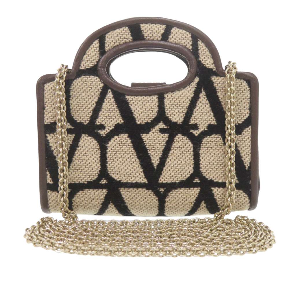 Valentino Leather Trimmed Toile Iconographe Satchel Beige Mi