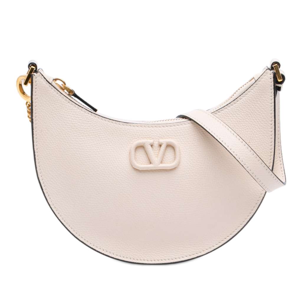 This hobo bag features a leather body, a curb chain and leather strap, a top zip closure, and an interior slip pocket.