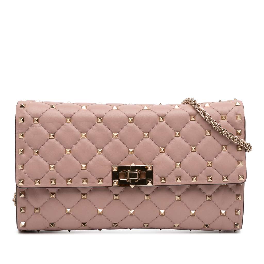 Valentino Quilted Nappa Rockstud Spike Wallet On Chain Pink