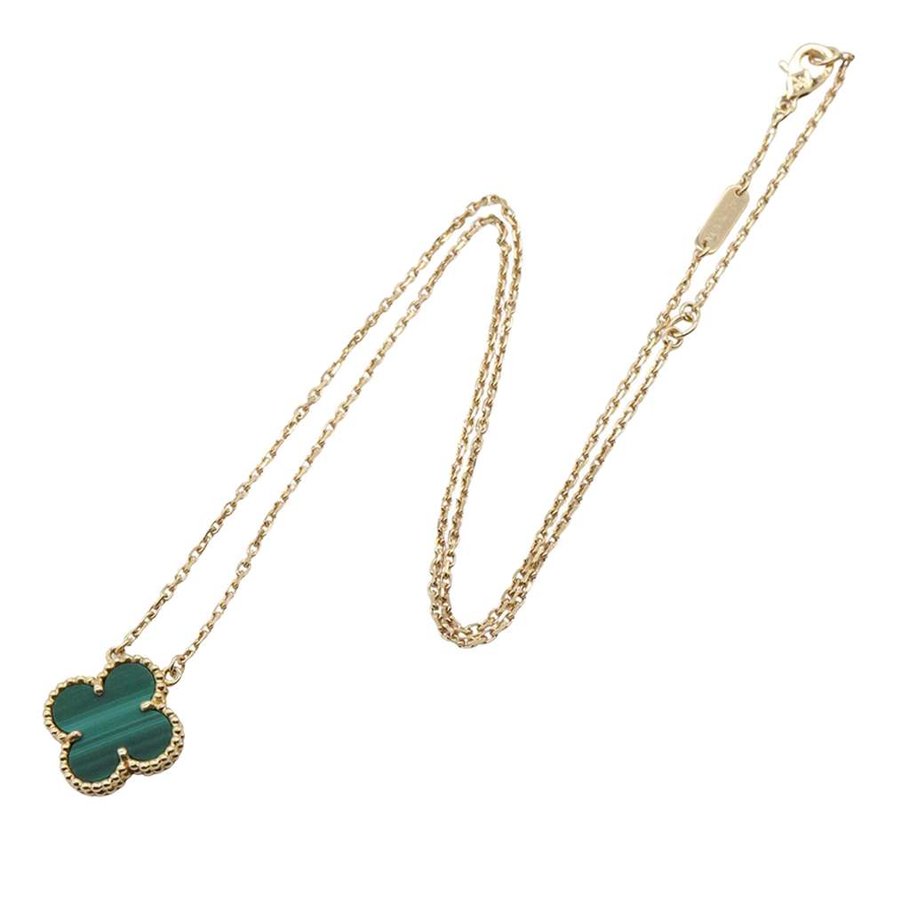 This necklace features an 18K yellow gold body, a malachite embellished pendant, and a lobster clasp closure. This item includes a repair certificate. Motif Measurements: W1.50cm x H1.50cm