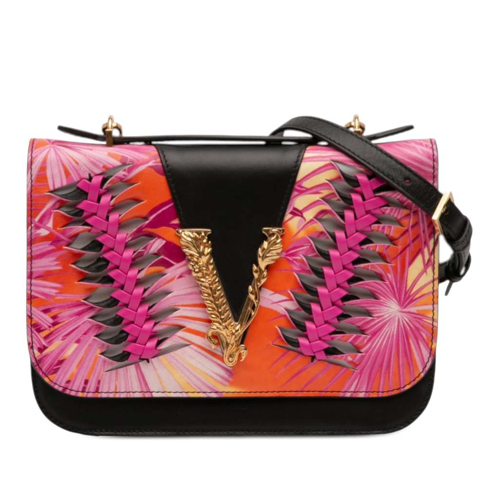 Versace Calfskin Jungle Weave Virtus Satchel Black Small Lea